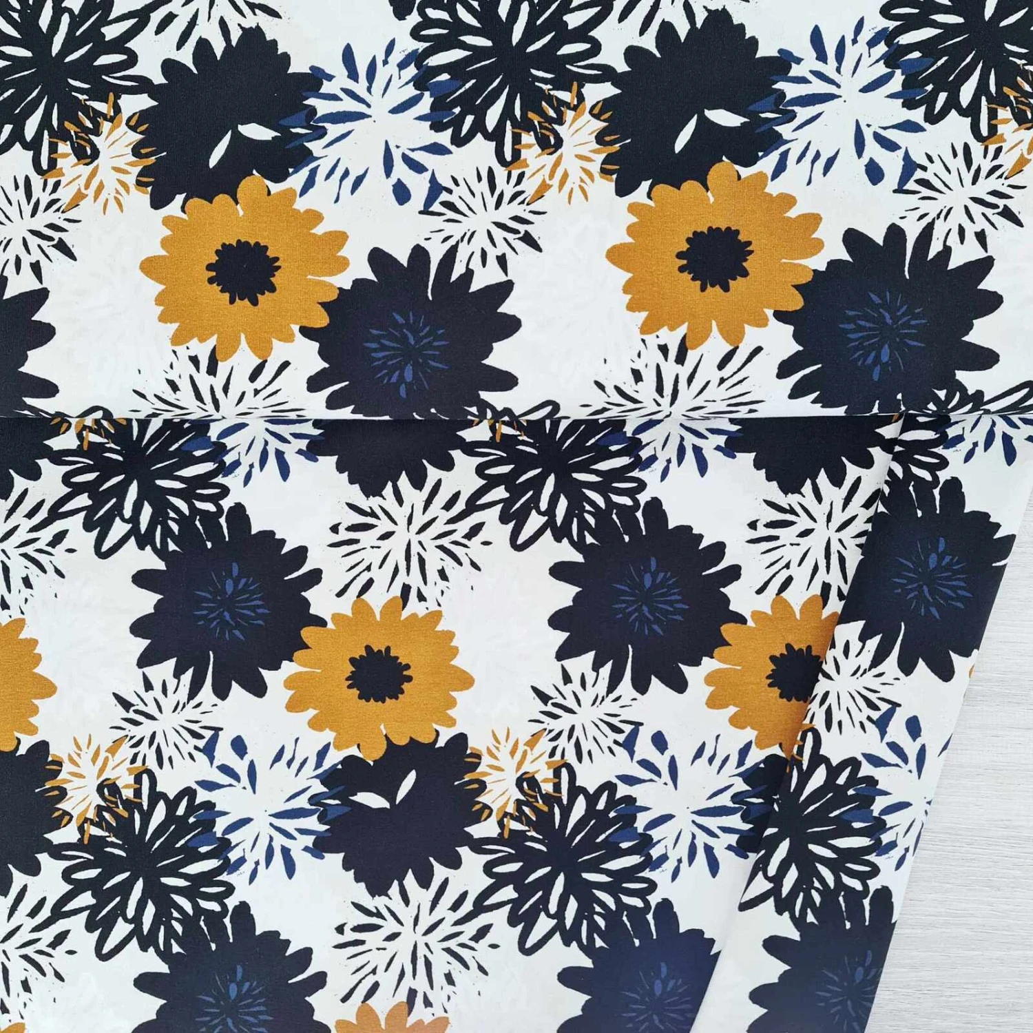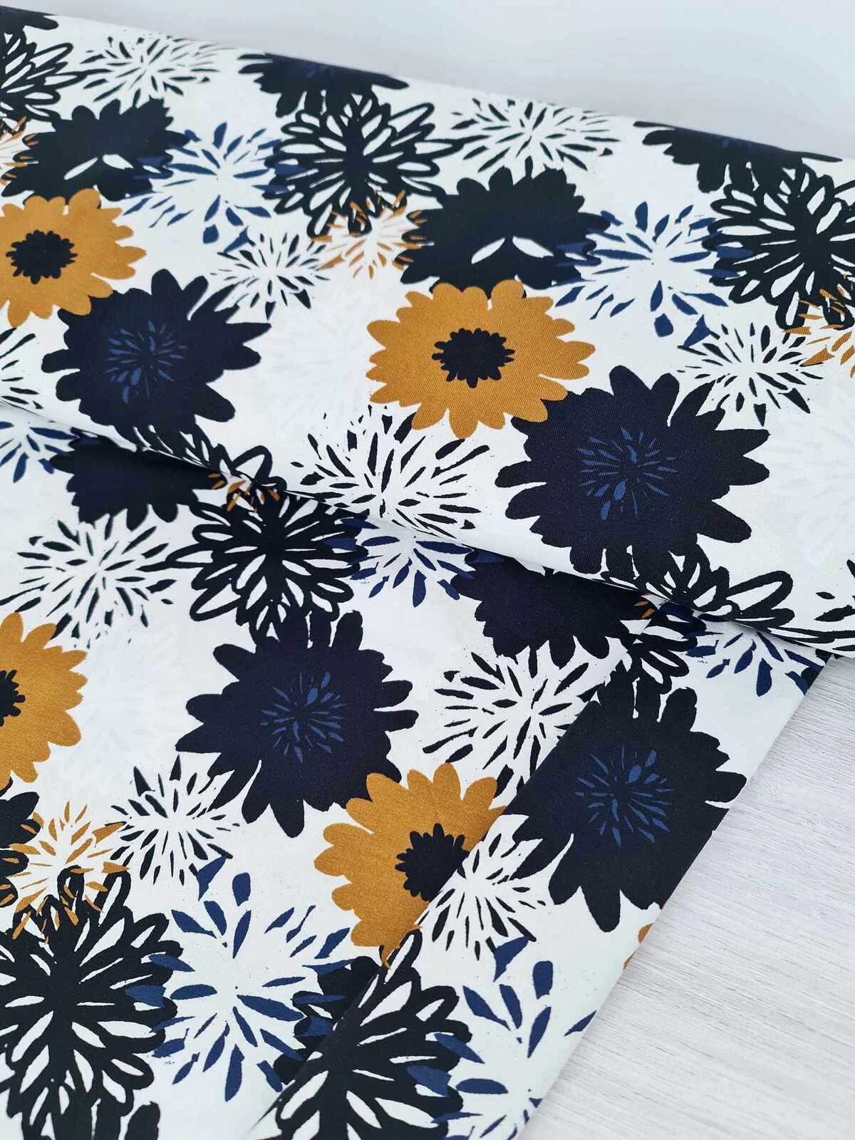 Print Name: Flowering Blooms Ochre Denim Blue