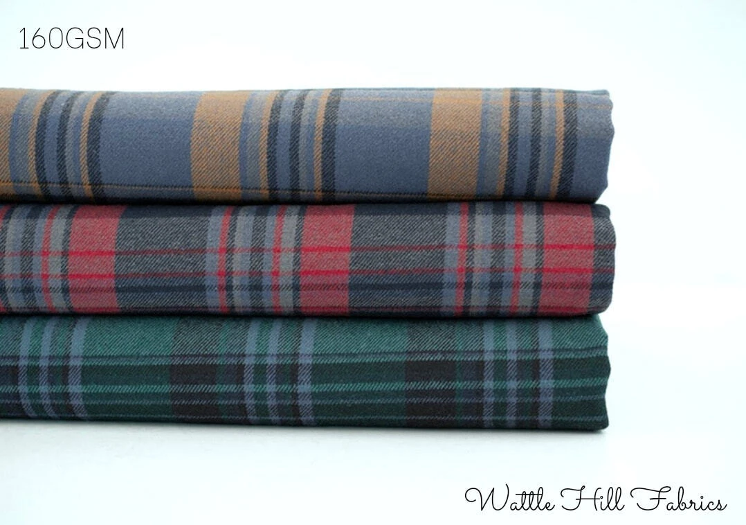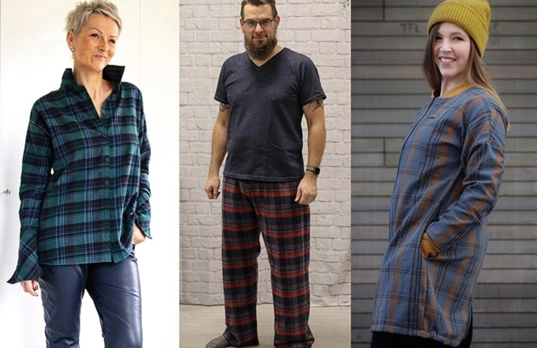 These flannels are not thick and stiff, but nice and soft with easy draping and very comfortable to wear. Beautiful to work with and ideal for shirt dresses, shirts classic blouses, tunics, men’s shirts, cosy flannel pants, jackets and of course for cosy scarves!