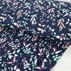 European Fine Ribbed Jersey Knit, Oeko-Tex, Floral Leaves Navy