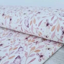European Fine Ribbed Jersey Knit, Oeko-Tex, Butterflies Pink
