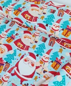 European Cotton Elastane Jersey, GOTS Organic, Santa & Snowman Blue