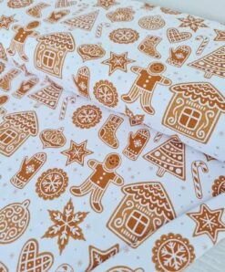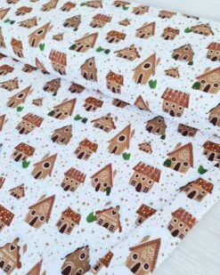 European Cotton Elastane Jersey, GOTS Organic, Gingerbread Houses White
