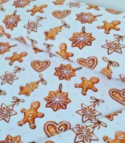European Cotton Elastane Jersey, GOTS Organic, Gingerbread Ornaments