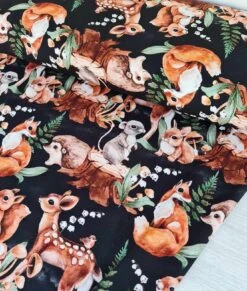 European Cotton Elastane Jersey, GOTS Organic, Forest Friends Black