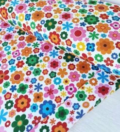 European Cotton Elastane Jersey, GOTS Organic, Retro Flowers