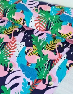 European Cotton Elastane Jersey, GOTS Organic, Flamingo Palm Beach