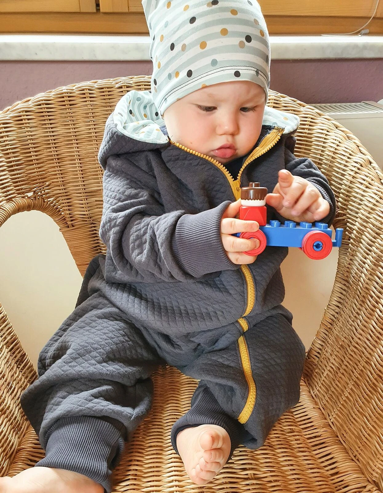 The high-quality knit consists of two layers of quilted cotton and a middle layer of volume fleece. The diamonds are about 1cm in size.